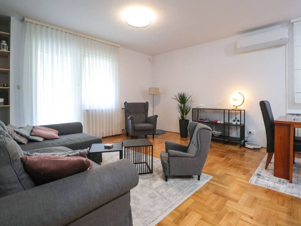 Iznajmljuje se prekrasan 3-soban stan u visokom prizemlju manje zgrade/urbane vile u Mlinovima. Velik je, svjetao i uredan, vlasnici su ga opremali za sebe.