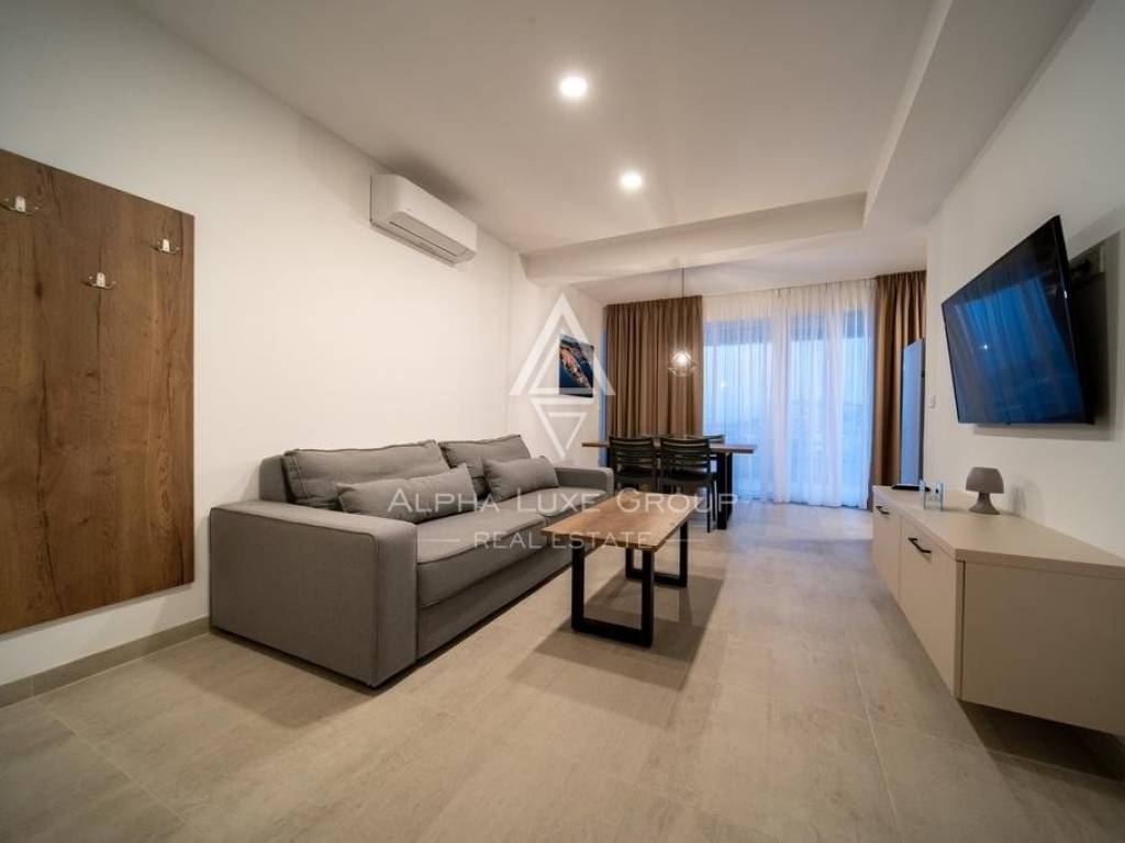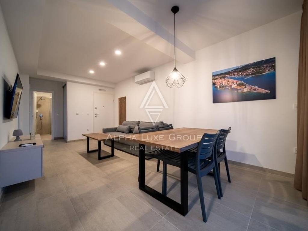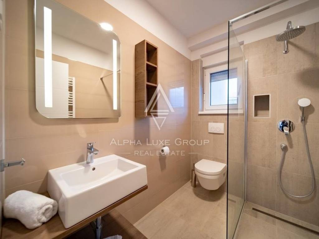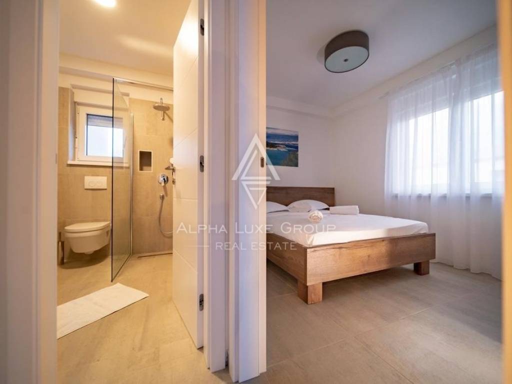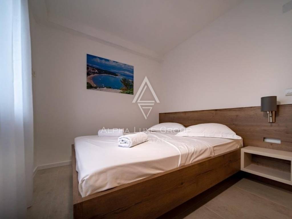 This modern villa is intended for rent. It consists of seven residential units (apartments), six of which are designed for renting and engaging in tourism, while one unit is intended for service (laundry, storage, apartment for the caretaker). Each apartment has two bedrooms, bathroom, kitchen with dining area and a living room and a terrace with a beautiful view. There are beautiful sandy beaches nearby. The house is built with high-quality materials, is equipped with modern furniture and is sold fully equipped. In the yard, there is a swimming pool with sun deck, outdoor bar, barbecue and everything you need for a pleasant stay and rest.