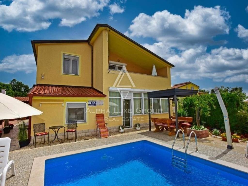 This fantastic apartment house with five apartments is located in a quiet place near Poreč. Its total area is 280 m2 with a yard space of 514 m2, and it is spread over two floors, of which three apartments are located on the ground floor and two apartments on the first floor.
