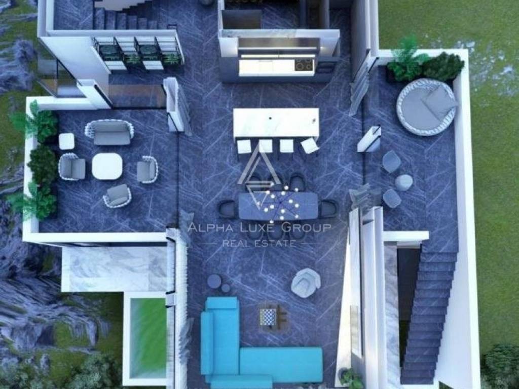 The second floor consists of a main bedroom with a bathroom, a spa, and wellness room with a sauna and jacuzzi, and a pergola with a fantastic sea view.