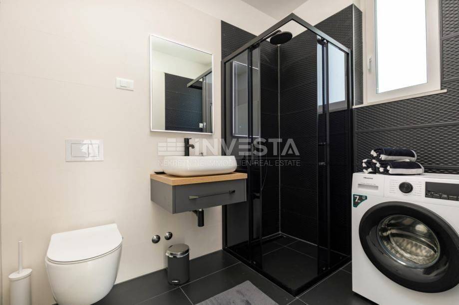 Designed as a smart home, heating is provided by a heat pump, specifically through underfloor heating. In the summer months, cooling is ensured by air conditioning units placed in all rooms and the living area. The villa is under video surveillance, with an integrated alarm system and electric sliding doors, which, along with the heating, are managed via applications and remote key.