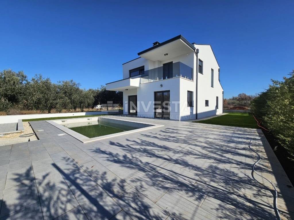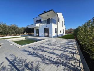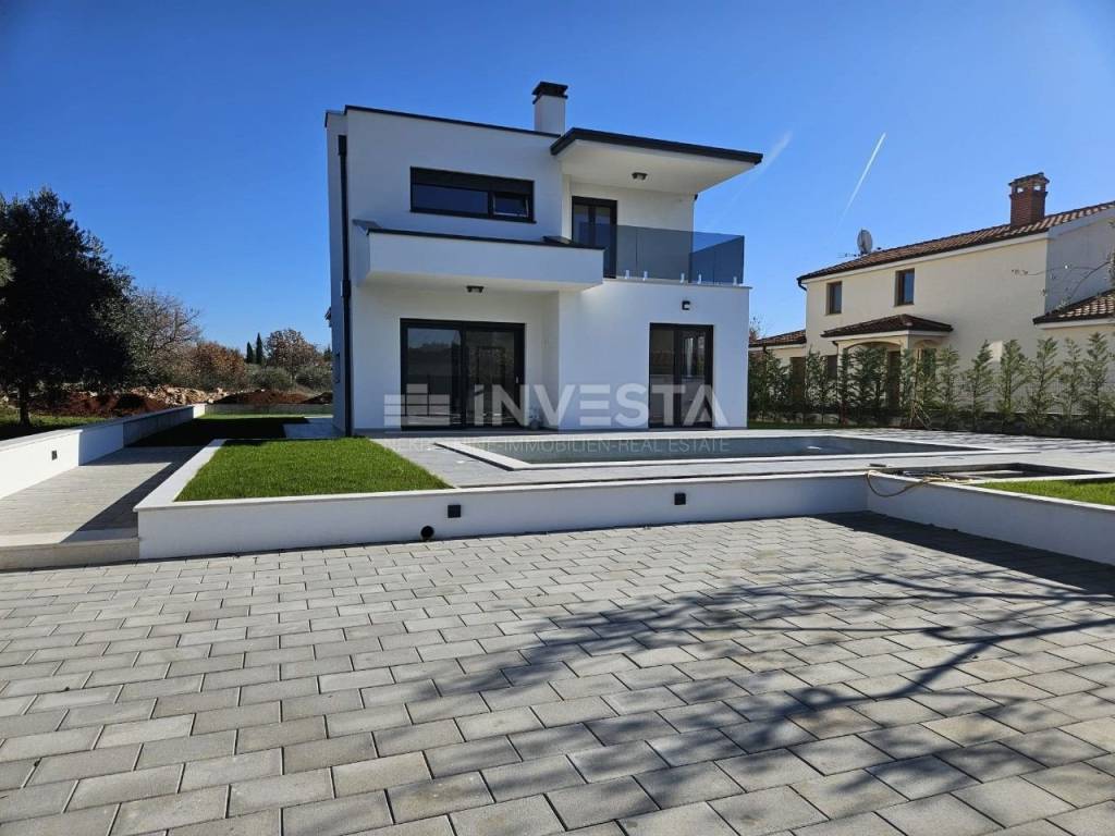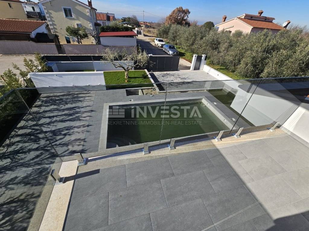 In a small settlement near Poreč, just 6 km from the city center, this exceptional modern villa covers a total area of 139.30 m² on a plot of 521 m². The villa extends over two floors: the ground floor and the first floor, which offers a beautiful view of the sea.