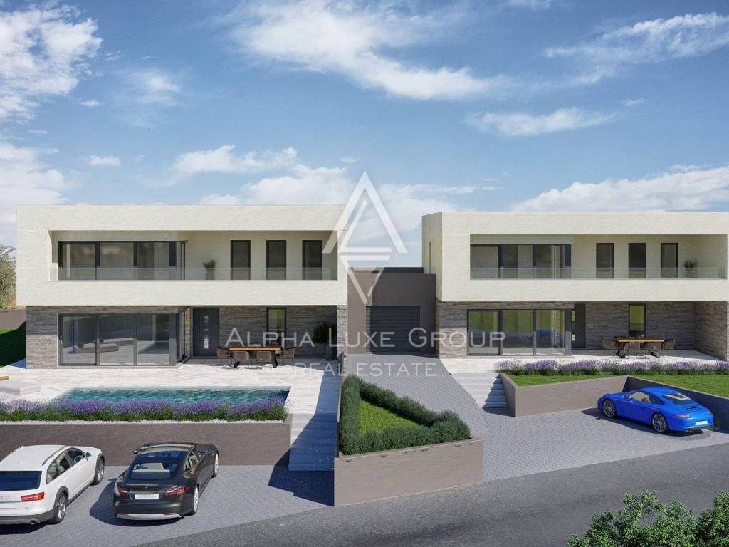 For sale is a modern villa with pool and garden, semi-detached house connected by a garage. The villa is located in a quiet location near Porec.