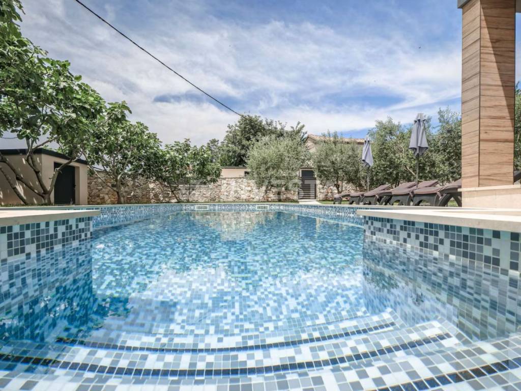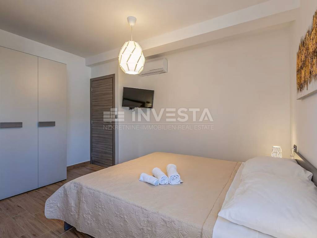 Authentic house for sale, located in a quiet settlement near Marčana, only 3 km away from the sea and arranged beaches. This carefully built property from 2018 successfully combines traditional architecture with modern comfort, creating a functional and aesthetically pleasing space for living or tourist rental. The total gross area of the house is 110 m², while the net living area is approximately 91 m². The property is situated on a landscaped plot of 650 m².