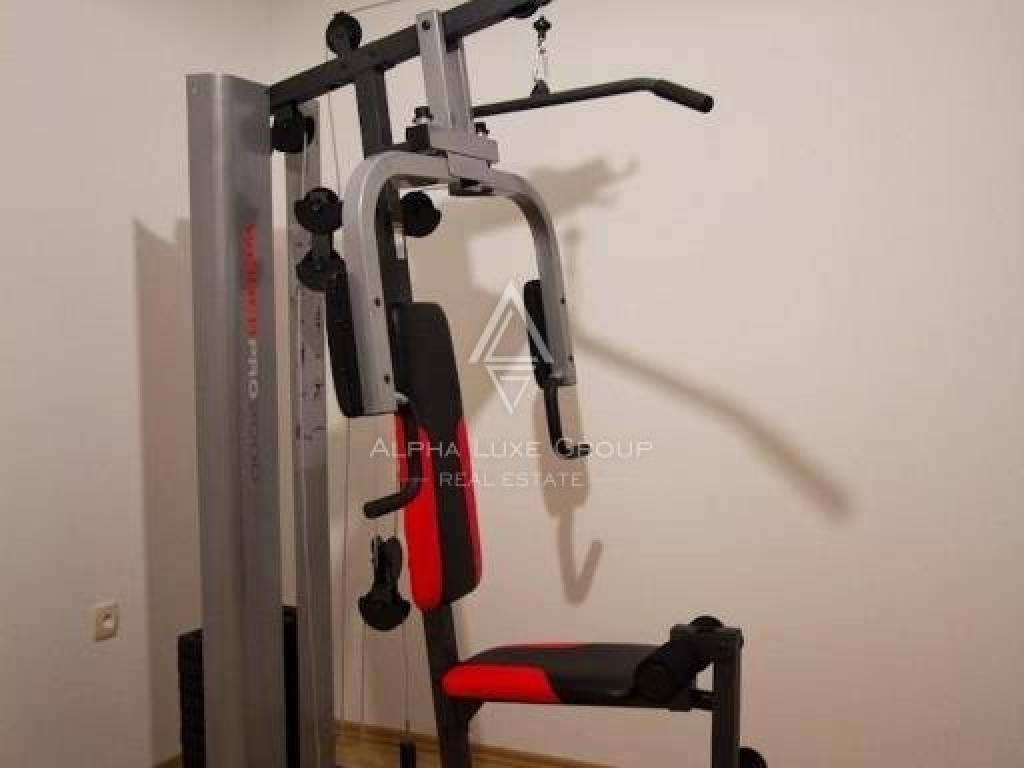 Outdoor living is enhanced by a partially covered terrace with an outdoor grill, framed by a traditional dry stone wall. The terrace leads to a 32m² swimming pool and landscaped beach area, ensuring privacy and relaxation. The property includes two covered parking spaces and a 1160m² garden featuring a BBQ area, children's corner with a trampoline, and a well-maintained lawn.