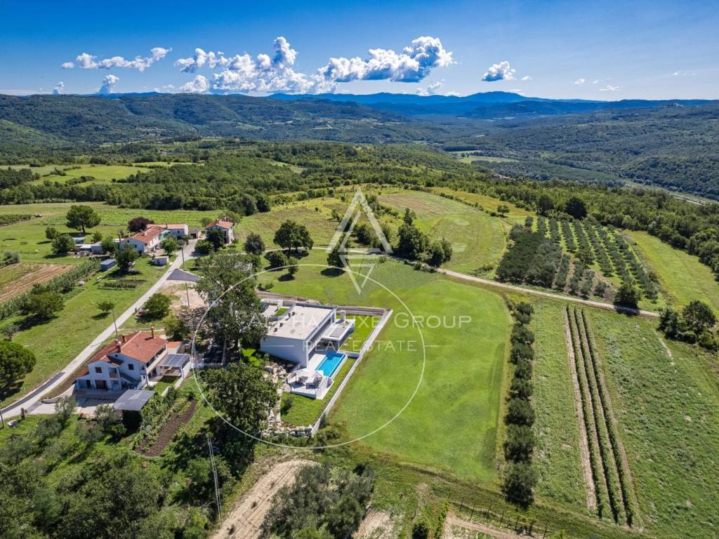 For sale: An exquisite newly constructed villa in 2023, located near Grožnjan and Buje in Istria, situated on a plot of 1,728 m². This stunning property offers unobstructed views with a protected green belt ensuring no future constructions.
