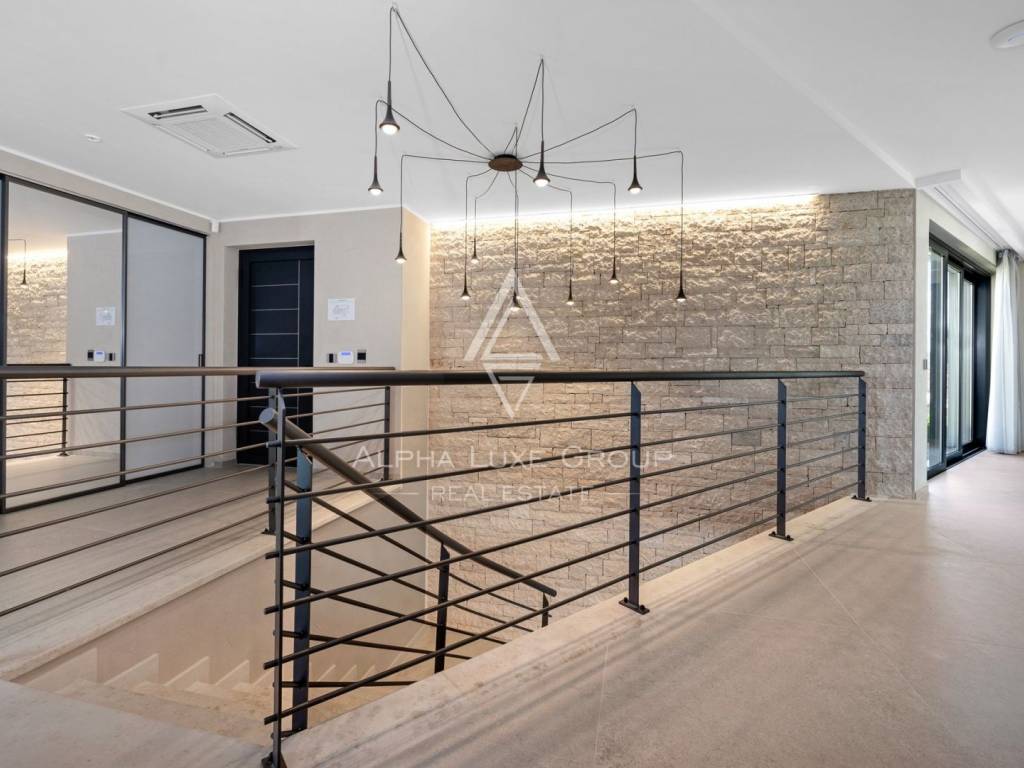 Ground Floor: Features a vast open plan area of 104.50 m² that includes a living room, dining area with a wood-burning fireplace, and a kitchen. This area opens onto a 135 m² terrace complete with an outdoor kitchen, barbecue, and a 12x4 m heated infinity pool. Also on this level are a toilet, sauna, gym, wine cellar, storage, and a utility room.