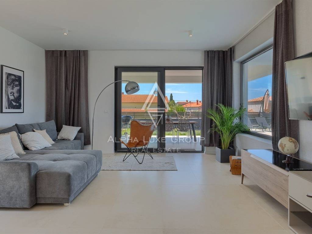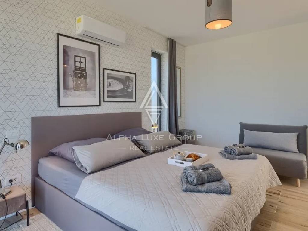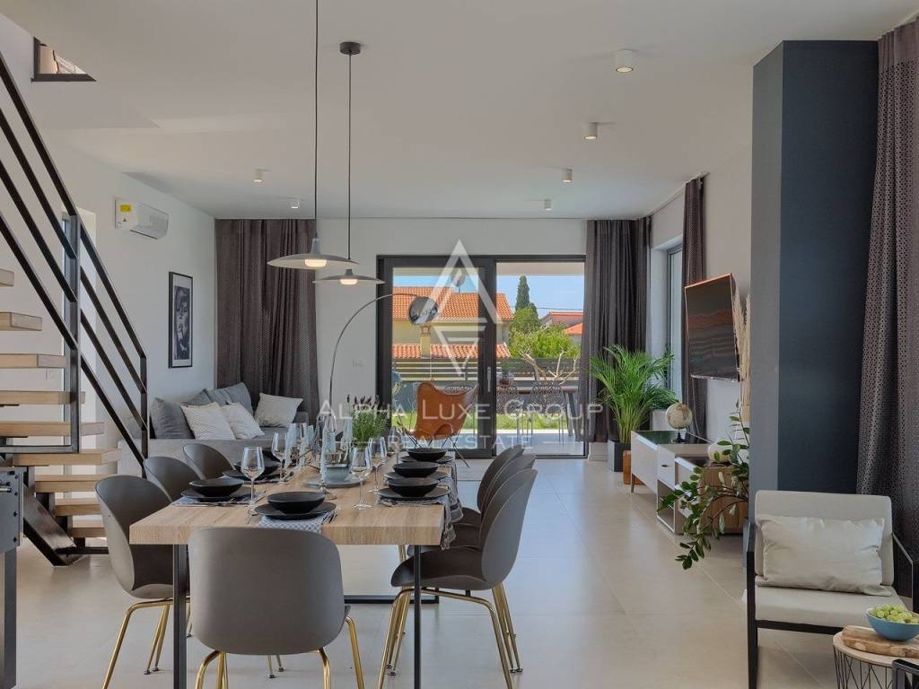 For sale is a stunning luxury villa located in a peaceful area of Galižana, Vodnjan. This modern property boasts 136 m² of living space, designed with meticulous attention to detail and high-end finishes. The villa is spread over two floors, offering ample space for comfort and relaxation. The ground floor features an open-concept layout with a fully equipped kitchen, living room, dining area, and a guest toilet. Large glass walls provide stunning views of the swimming pool, a beautifully landscaped garden with an outdoor kitchen, barbecue area, and panoramic vistas of the surrounding greenery and the Brijuni Islands.