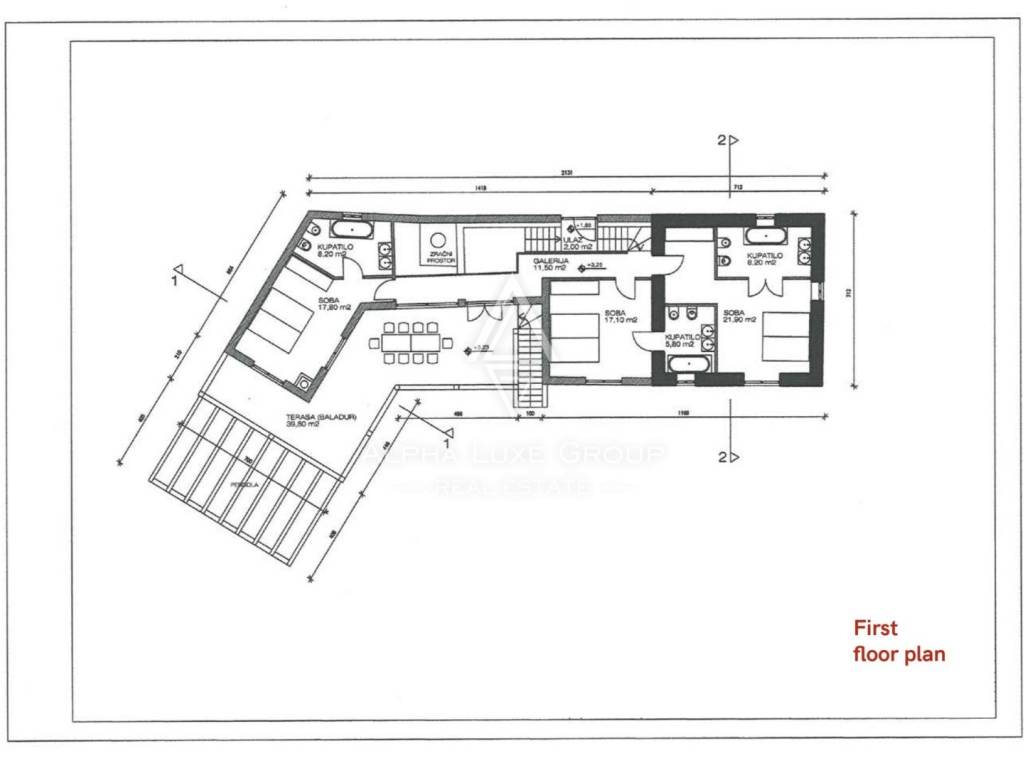 First Floor: The upper level includes two additional bedrooms with en suite bathrooms, French balconies, and scenic views of the pool and surrounding nature. The master suite, with its spacious walk-in closet, private bathroom, and a 50 m² terrace with direct garden access, adds a touch of exclusivity.