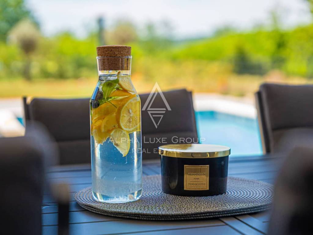 Set in a peaceful village near Labin, this beautifully designed home offers refined comfort surrounded by natural scenery and traditional Istrian charm. The property provides a harmonious blend of quality construction, tasteful interior design and a layout created for both relaxation and modern living. Its bright open-concept living area connects the kitchen, dining space and lounge, opening onto a covered terrace overlooking the garden and pool. Three well-appointed bedrooms each feature a private bathroom, while a guest toilet and utility rooms add convenience to everyday use.