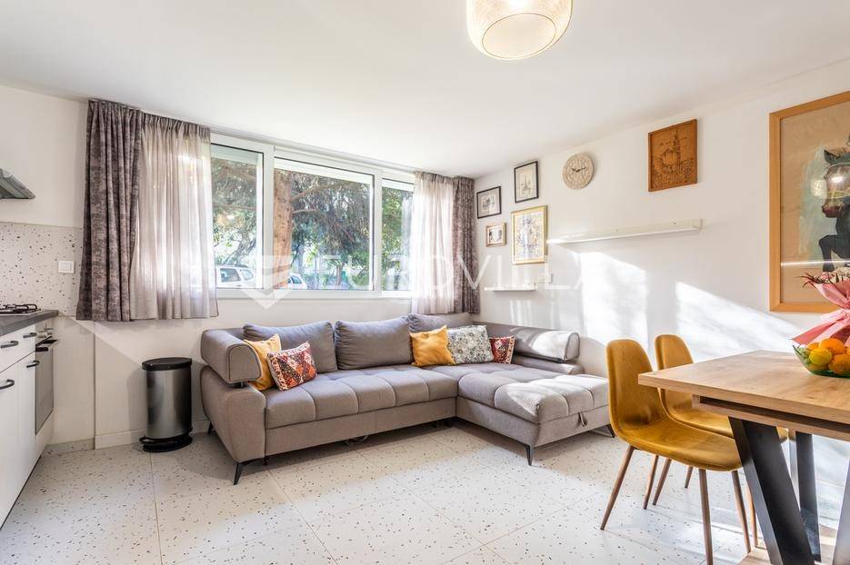 Split, Špinut, Gajeva ulica, potpuno namješten dvosoban stan u prizemlju stambene zgrade na odličnoj lokaciji, u neposrednoj blizini centra grada.Stan je podijeljen na hodnik, dvije spavaće sobe, kupaonicu, te dnevni prostor ( dnevni boravak i kuhinja ), ukupne površine 45 m2.