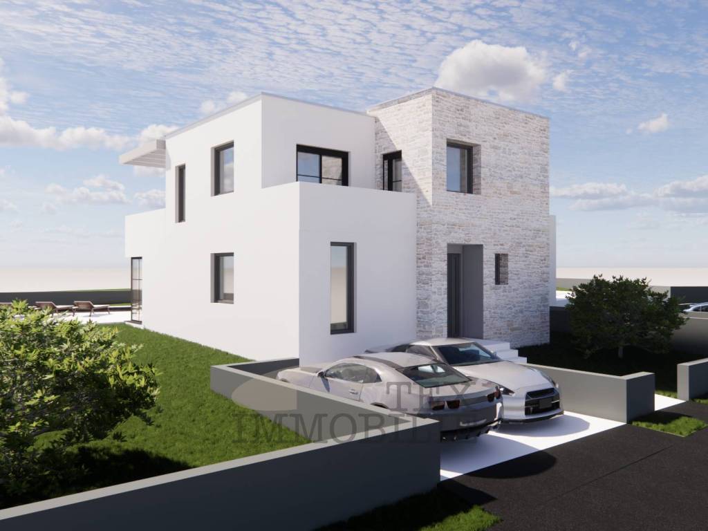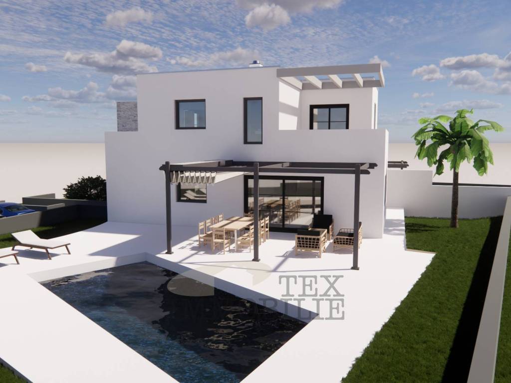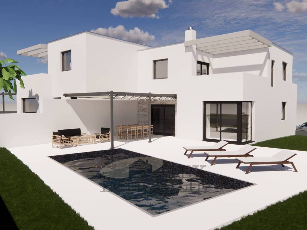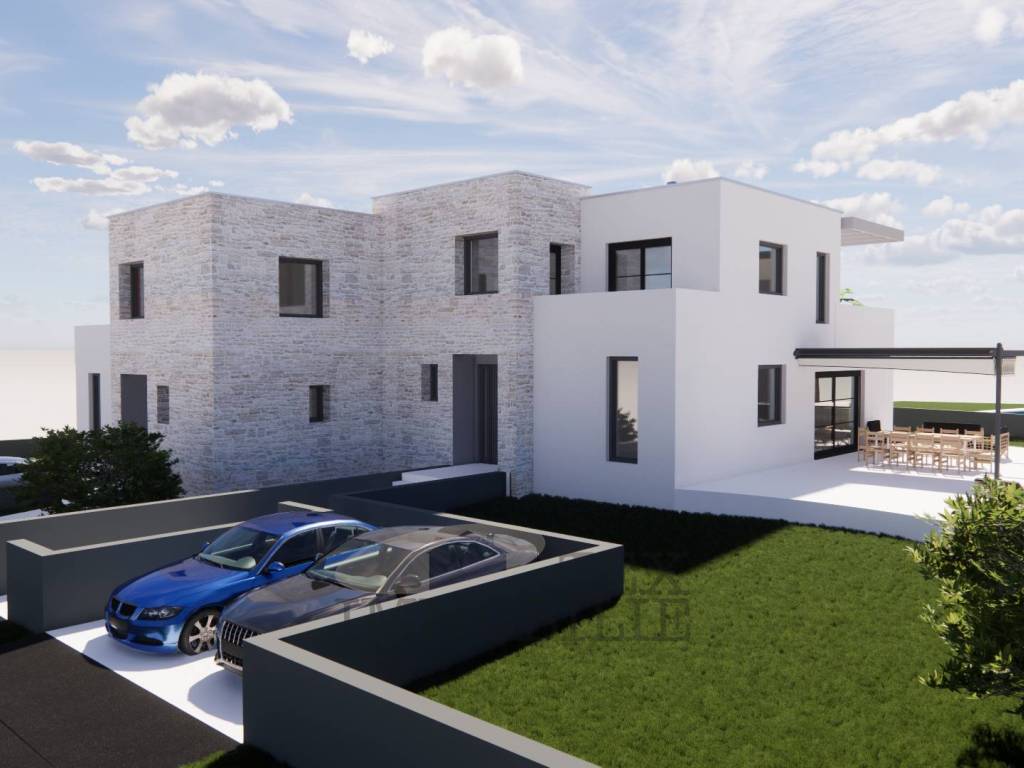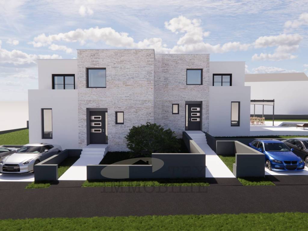 In the vicinity of Poreč, a semi-detached house under construction is for sale. The villa will consist of a bedroom with bathroom, living room, kitchen and toilet on the ground floor. On the first floor there will be three bedrooms, two bathrooms, a terrace and a balcony. There will be a swimming pool and two parking spaces in the yard of the house. The house is sold on a turnkey basis. Heating and cooling will be with split inverter air conditioning.