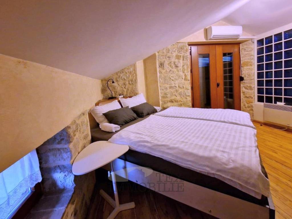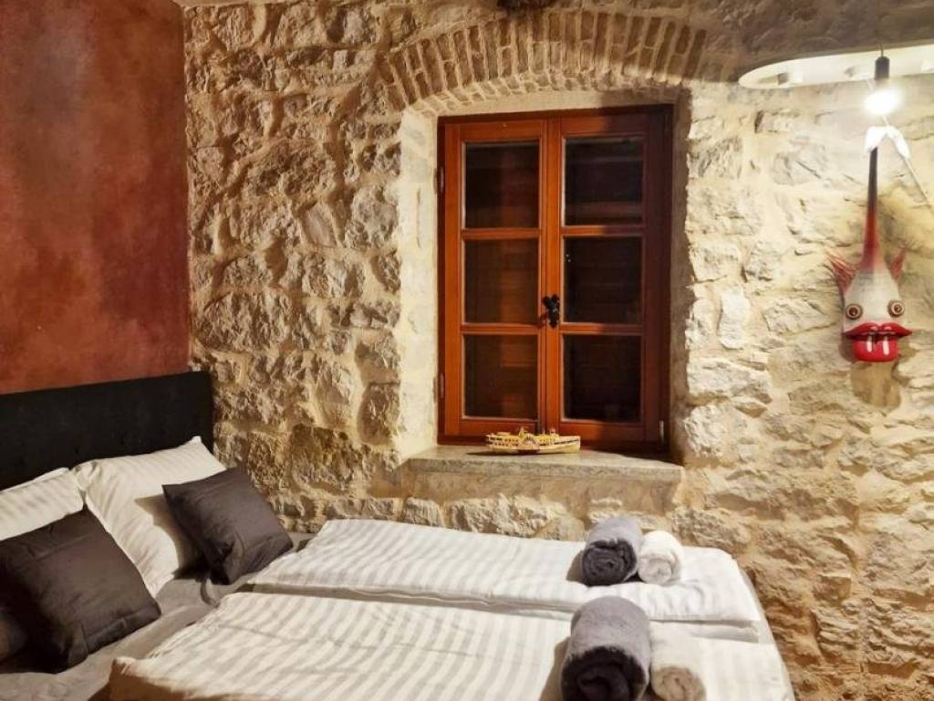 The second floor features two comfortable bedrooms, a bathroom, and a terrace, providing a place to enjoy sunsets with an incredible view of the sea and the old town core of Funtana.