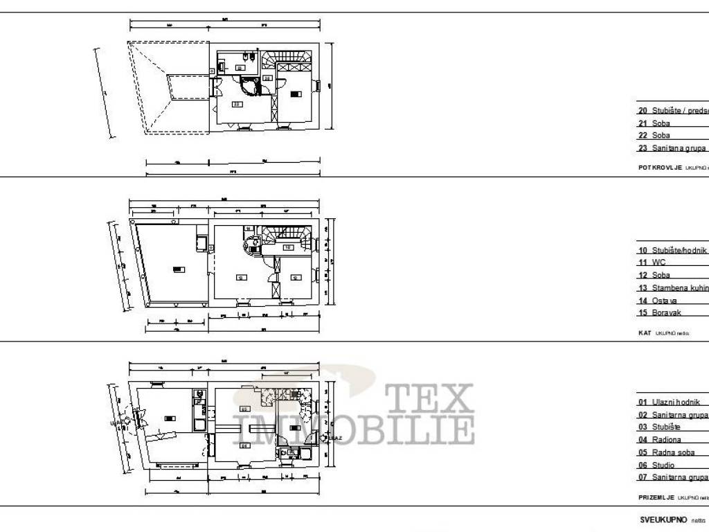 The second residential unit is divided into three floors with a total area of 146 m².