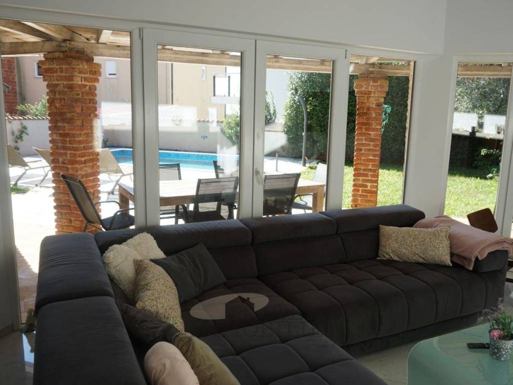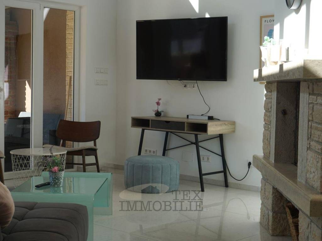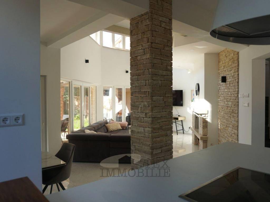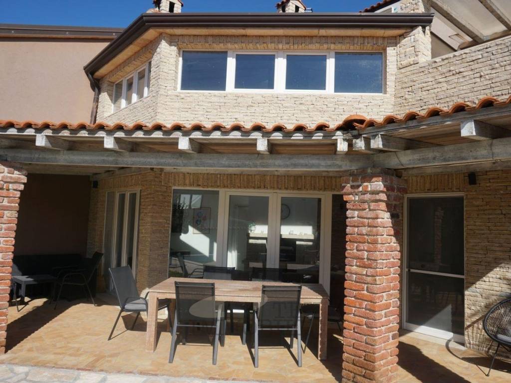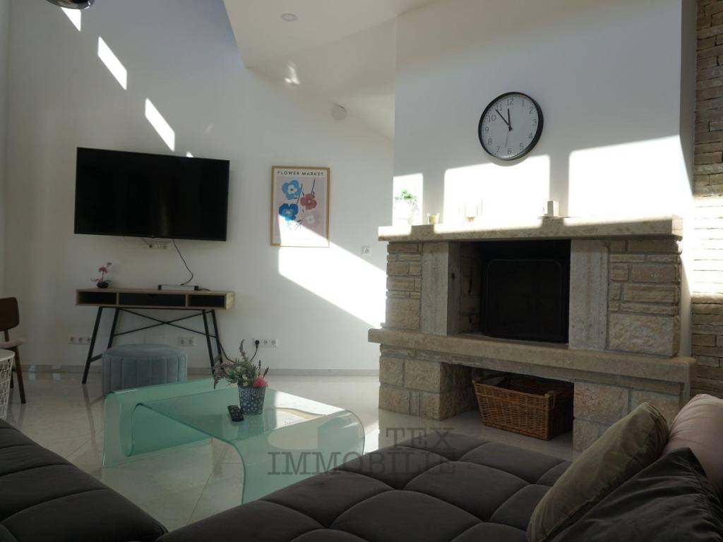 This semi-detached house sits on a 449 m² plot in a quiet setting near Poreč. With a living area of 115.73 m², it perfectly combines modern design, comfort, and a welcoming home atmosphere.