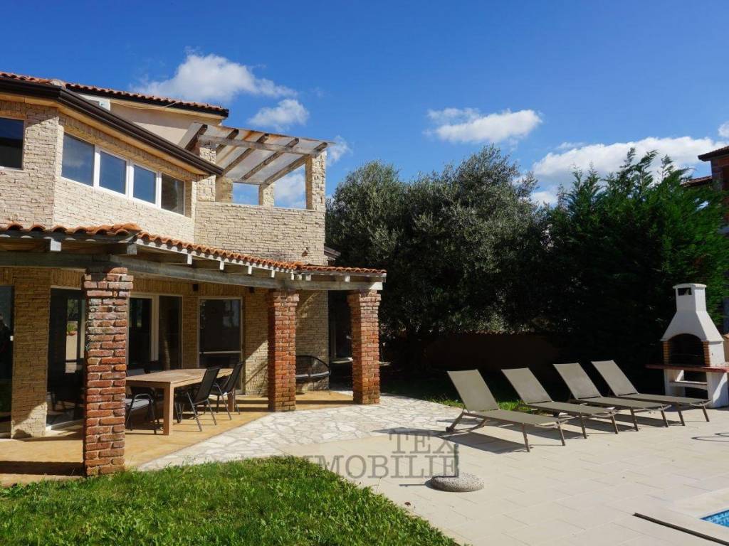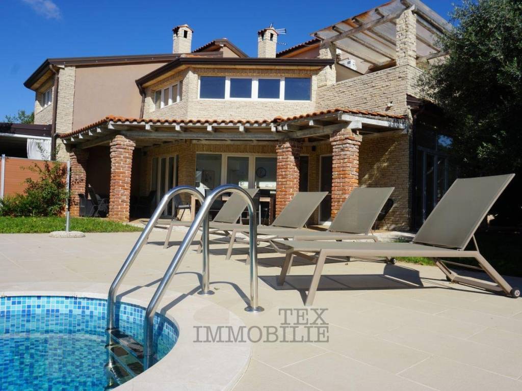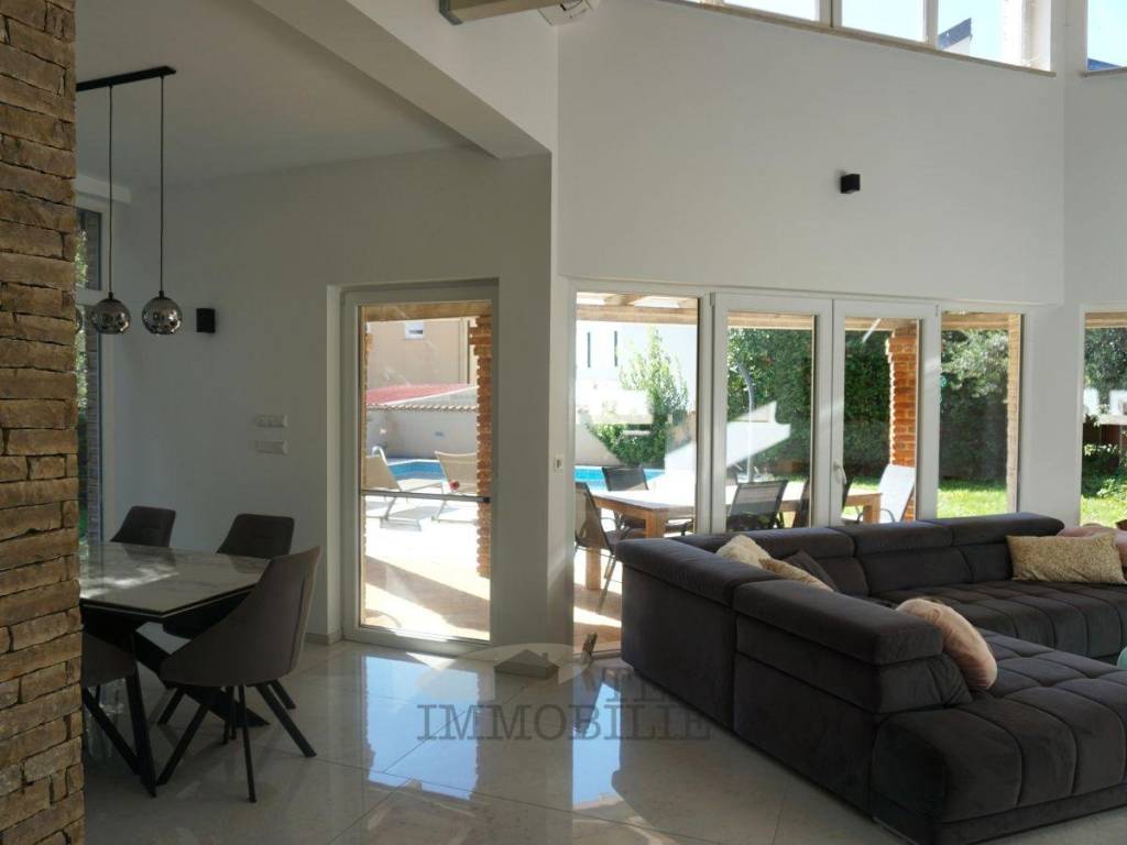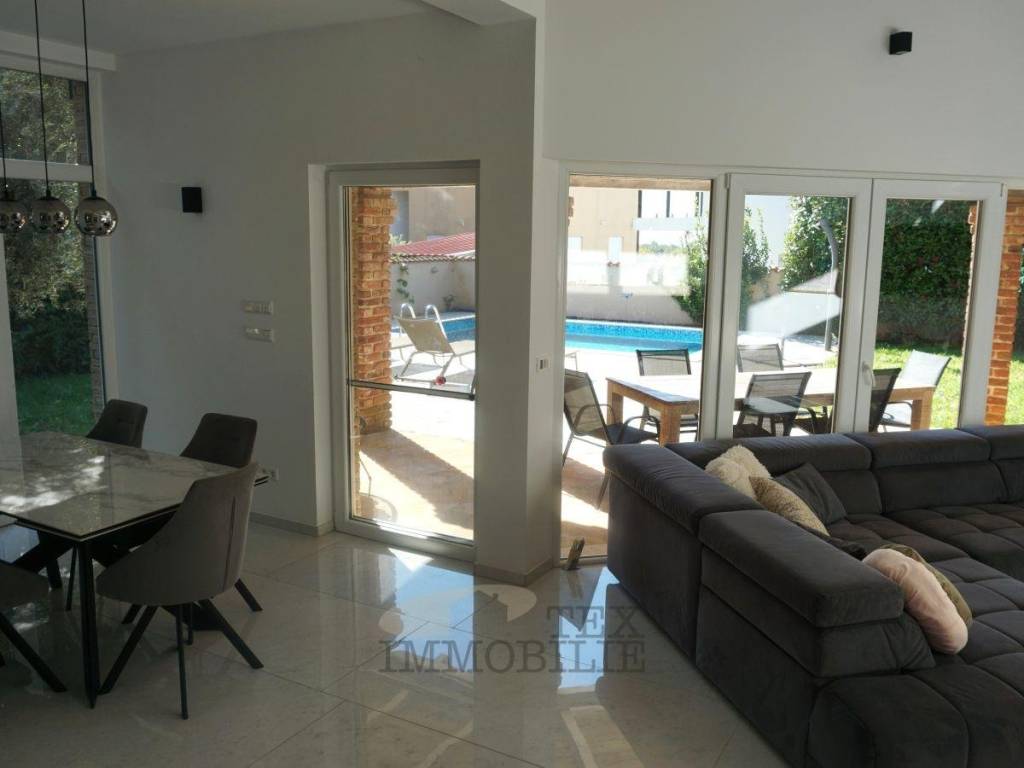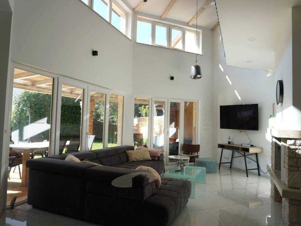 This semi-detached house sits on a 449 m² plot in a quiet setting near Poreč. With a living area of 115.73 m², it perfectly combines modern design, comfort, and a welcoming home atmosphere.