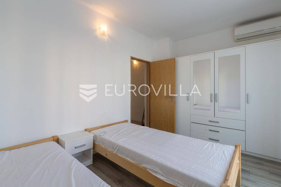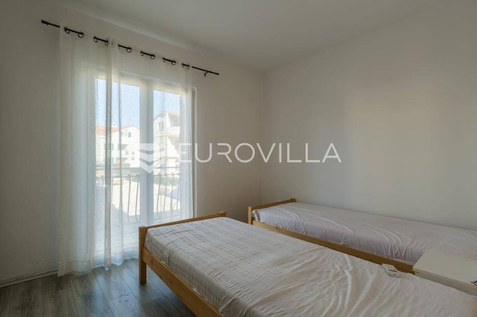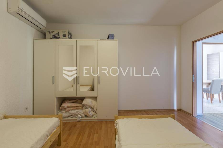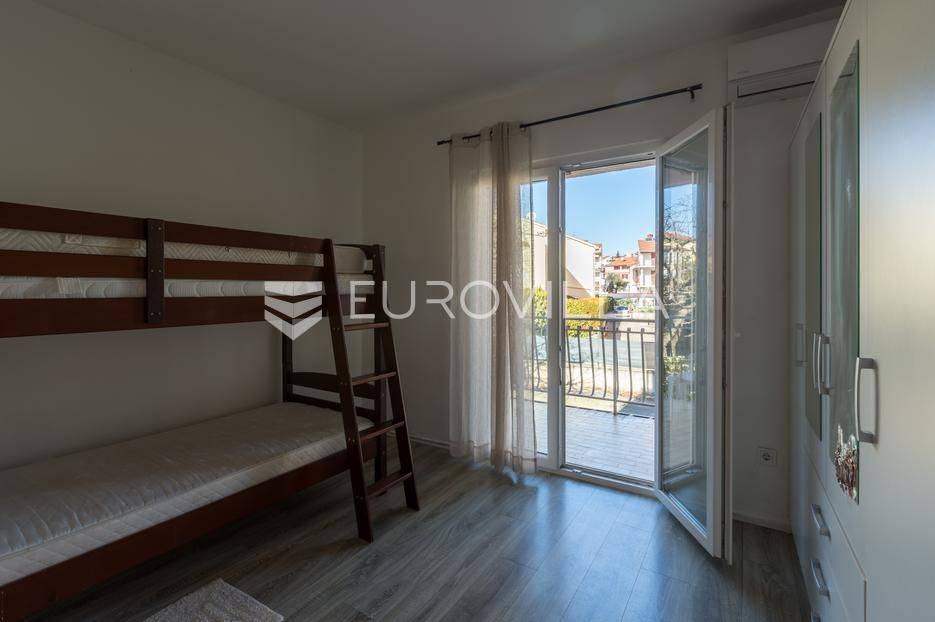 U atraktivnom Rovinju na veoma traženoj lokaciji smješten je ovaj prostrani stan. Pripada manjoj stambenoj zgradi sa svega pet stanova u tihoj sporednoj ulici daleko od prometne buke. Stan je udaljen od plaže Kuvi 650 metara, 170 m od dječjeg vrtića, od popularne Rovinjske rive 1.5 km, Pule 29 km, aerodroma 30 km. Stan se sastoji od dnevnog boravka, kuhinje s blagovaonicom, 3 spavaće sobe, dvije kupaone. Tu su i dvije terase te jedna natkrivena veranda s pristupom u dnevni boravak i kuhinju. Stanu pripada parkiralište za 3 vozila. Prodaje se opremljen. Za grijanje je zaslužan veliki kamin u dnevnom boravku, također tu su klimatizacijske jedinice za grijanje i hlađenje. Veoma zanimljiva ponuda veoma tražene lokacije s velikim potencijalom kao investicija a može služiti i kao komotan obiteljski dom. Više informacija na upit.