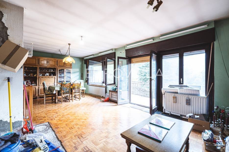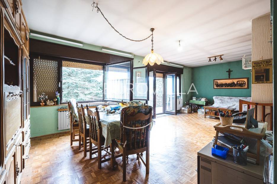 Funkcionalna troetažna kuća površine 106 m2 smještena na parceli od 4809 m2 (u građevinskoj zoni cca 1670 m2). Ukupna površina 5407 m2. Razvedena na tri etaže: Prva etaža – podrum, kotlovnica, hodnik, spremište, garaža (60 m2). Druga etaža – 2 spavaće sobe, 2 balkona, kuhinja, blagovaonica, dnevna soba, hodnik, kupaonica. Treća etaža – 2 tavana, hodnik, praonica. Kući pripada i dvorište površine 442 m2. Kuća je dobro održavana, dobra prilika za investiciju. Postoji mogućnost izgradnje objekta do 400 m2. Idilična i mirna lokacija okružena zelenilom, idealno za obiteljski odmor. Za sva pitanja Vam stojimo na raspolaganju.