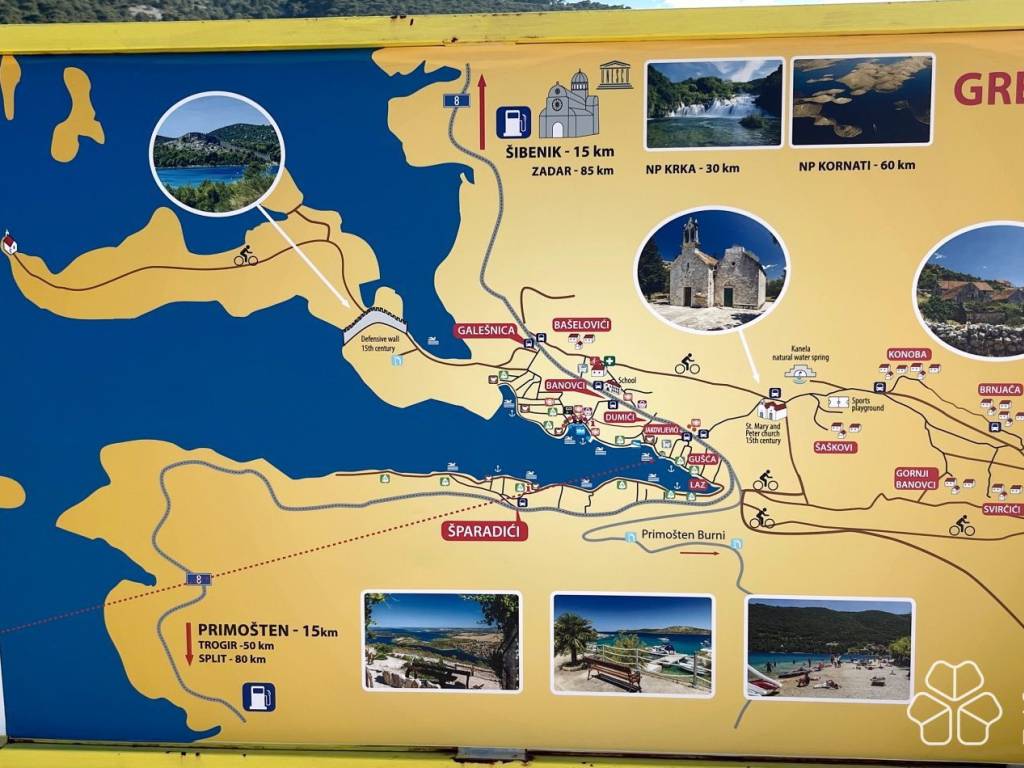 Struja i voda su u neposrednoj blizini. Parcele se nalaze na odličnoj lokaciji, 18 km od ulaza na autocestu A1 (izlaz Šibenik), 50 km od zračne luke Split i u neposrednoj blizini nacionalnih parkova Krka i Kornati.