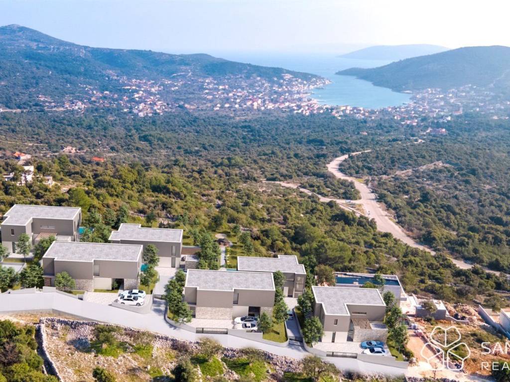 Discover exclusive villas located on an elevation above the sea in the tranquil Dalmatian town of Vinišće, perfectly integrated into the peaceful surroundings and the rich natural beauty of Dalmatia. For sale are three modern villas that offer a beautiful panoramic view of the sea and surrounding nature, representing an ideal refuge from the bustling modern life.