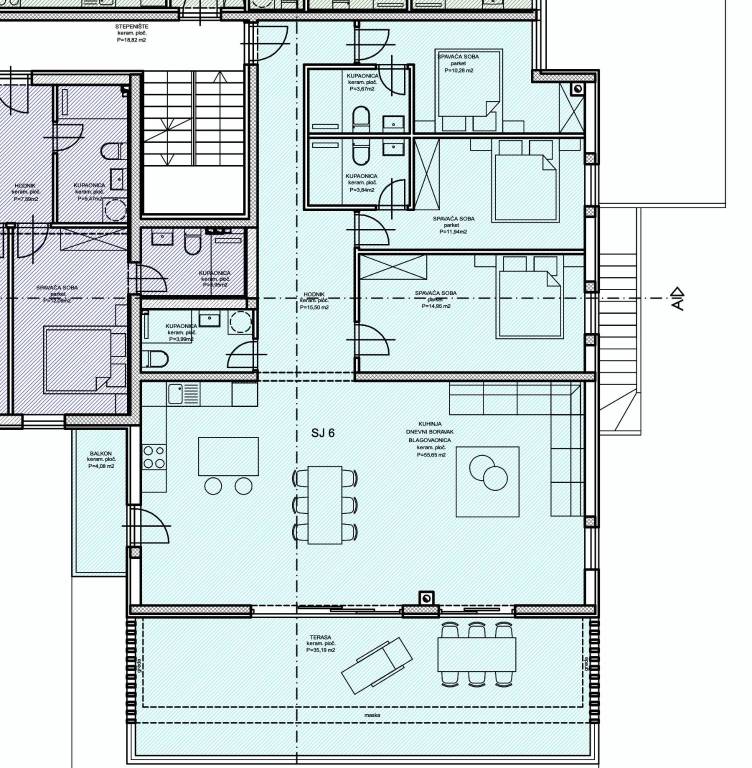 Apartment S-6 - 1st floor - living area 119.82 m2 (3 bedrooms + 3 bathrooms) + terrace (35 m2 - NW) + balcony (4 m2 - SE) + garage parking space + storage in the basement, net calculation area 146,84 m2 = 660,780 EUR