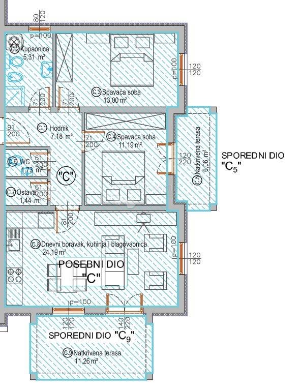 In a peaceful and well-maintained area near Poreč, this spacious and highly functional apartment combines modern comfort, quality construction, and generous outdoor space. With a net living area of 75 m and a total usable area of 85 m, the apartment offers a thoughtfully designed layout tailored for comfortable everyday living.