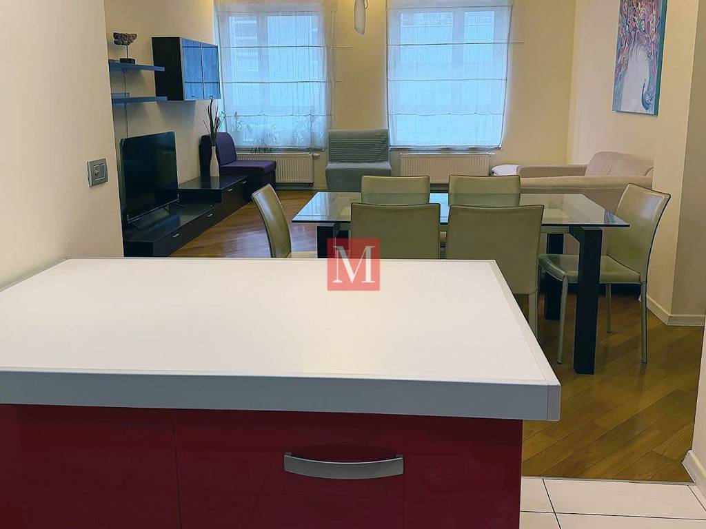 Modern 3-room apt. situated in a newer building in the city center, in immediate vicinity to Sheraton hotel. It consists of an open plan kitchen with dining and living area, 2 bedrooms, a bathroom and a guest toilet. The apartment comes with 1 parking space in the yard. Wellness with spa and fitness centre with a pool in the same building are for common use by all tenants for discounted price. Agency fee: 1 monthly rent + vat.