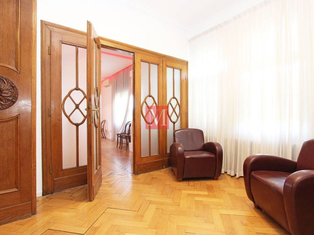 Charming and unique apartment of 176m2 on the 1st floor of a smaller and safe villa on the most elite microlocation in a quiet part of Tuškanac, just a few steps away from Ilica and the city center. It consists of an entrance area, a large living room, a kitchen with a dining room and an exit to a beautiful terrace with a view, a small hallway, a bedroom and a bathroom/toilet. Belonging to the apartment is a smaller 32m2 apartment located in the attic of the villa, which consists of 3 rooms. Street parking is free and always available in front of the villa. Agency recommendation - one of a kind property on a unique and exclusive location, and at the same time a rarity on the market. More information on personal request. Agency commission: 2%+VAT.