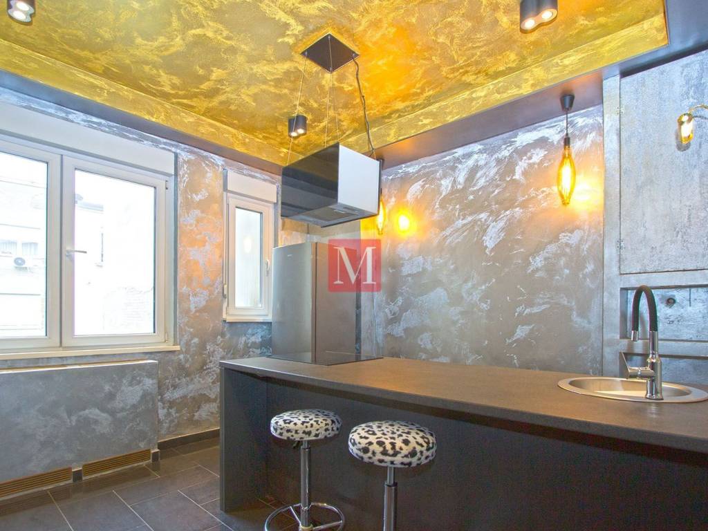 Luxuriously renovated and fully furnished two-room apartment of 40m2 on the 5th floor of an excellent building with an elevator in the city center. It consists of an entrance room with kitchen / dining area, living room / bedroom 2 and a bathroom with separate toilet and shower. Exclusively long-term lease with a mandatory deposit. Available from 1st July 2025. Agency commission: 1 month rent + VAT.