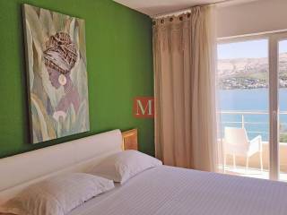 Detached villa of 600m2, on an attractive plot of 750m2 1st row to the sea, with a beautiful view of the Old Town of Pag, Pag bay and Velebit! The villa was built in 1983 and completely renovated in 2020. It spreads over 3 floors which are: