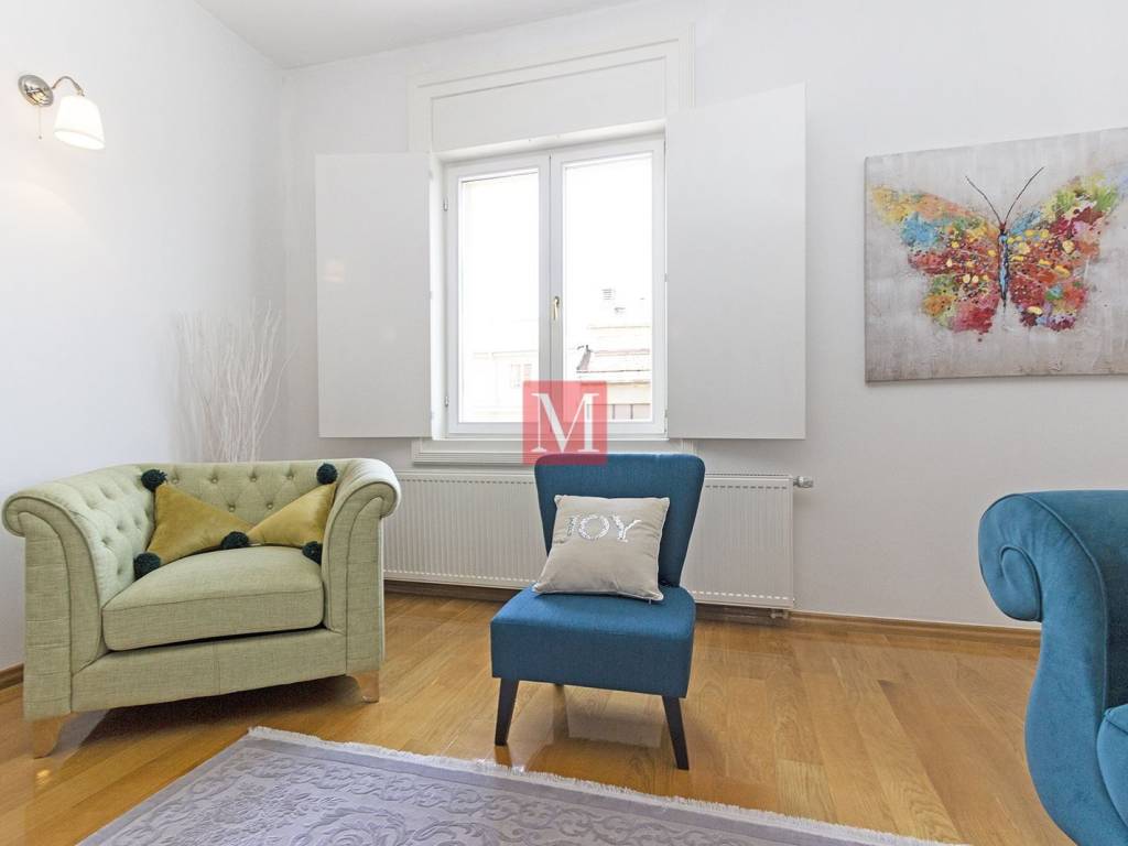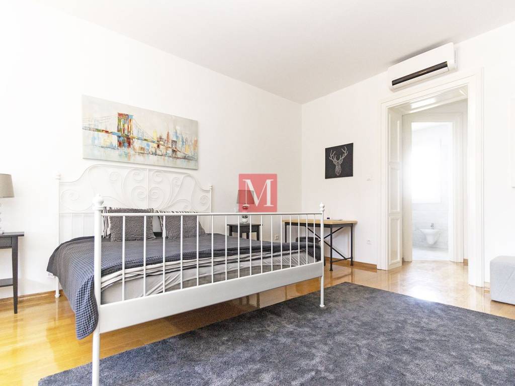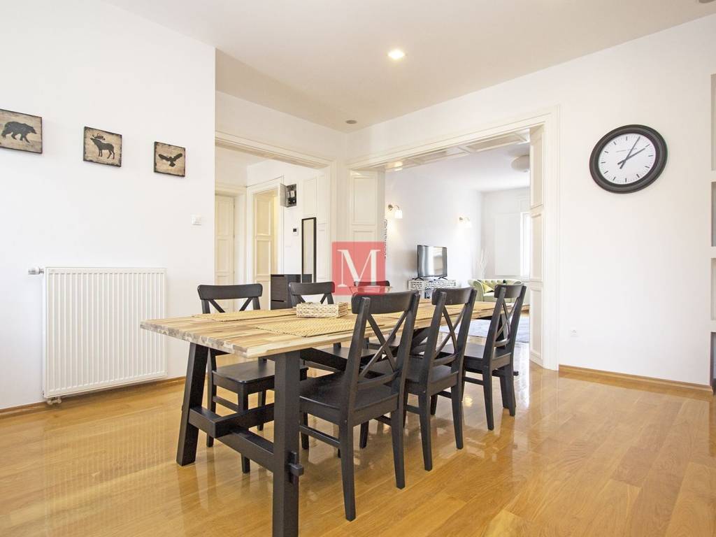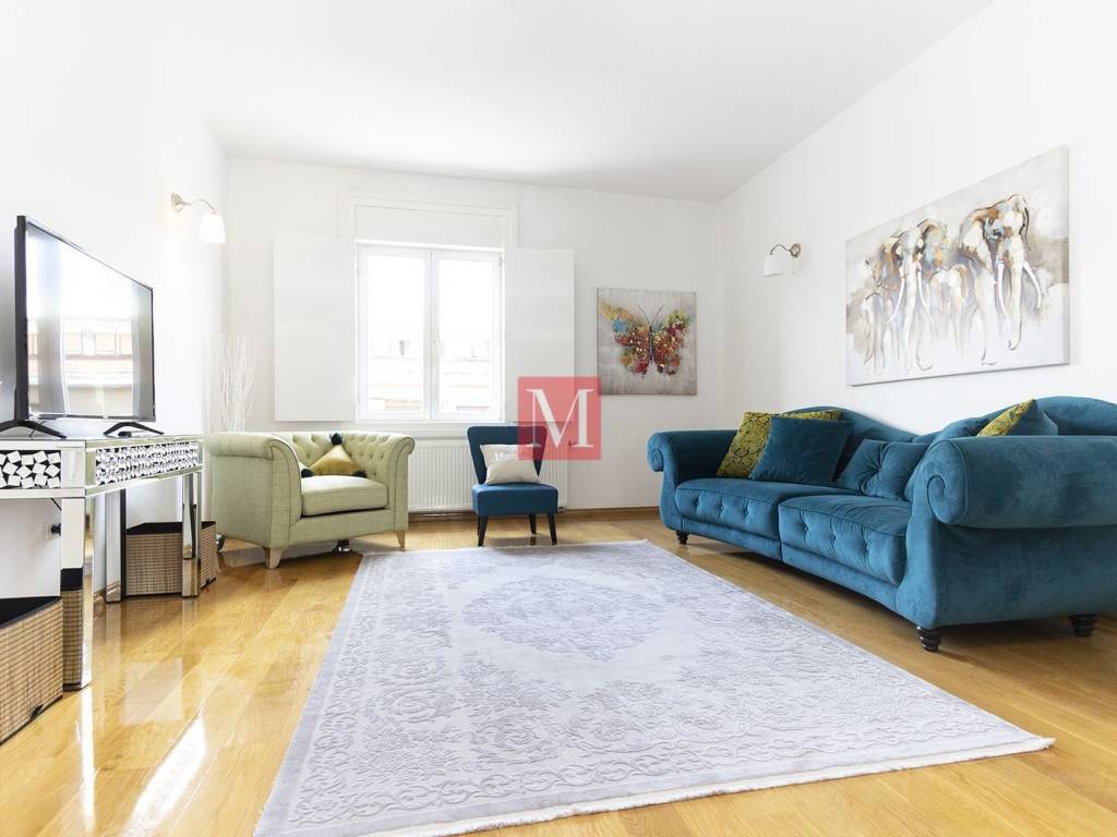 Beautiful 4 bed apartment of 146 m2 on the 3rd floor of an excellent building in an attractive location in the city center. It consists of an entrance hall with balcony, large living room with dining area and kitchen, 4 bedrooms, one of which is a master with its own wardrobe and bathroom, and 2 more bathrooms. The apartment is fully furnished and equipped with luxury furniture and high-end appliances. Close proximity to the main town square, Dolac market, public transport and all amenities. There is a possibility of renting a parking space. Agency commission: 2% + VAT.