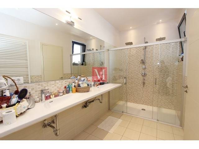 The villa has high-quality exterior and interior joinery, ceramics, sanitary ware and parquet floors. Gas central heating system with additional underfloor heating of all surfaces with ceramic tiles (complete basement, all bathrooms and living room, dining room and kitchen) and solar water heating. Installations have been made for the installation of an indoor fireplace in the living room on the ground floor of the villa.
