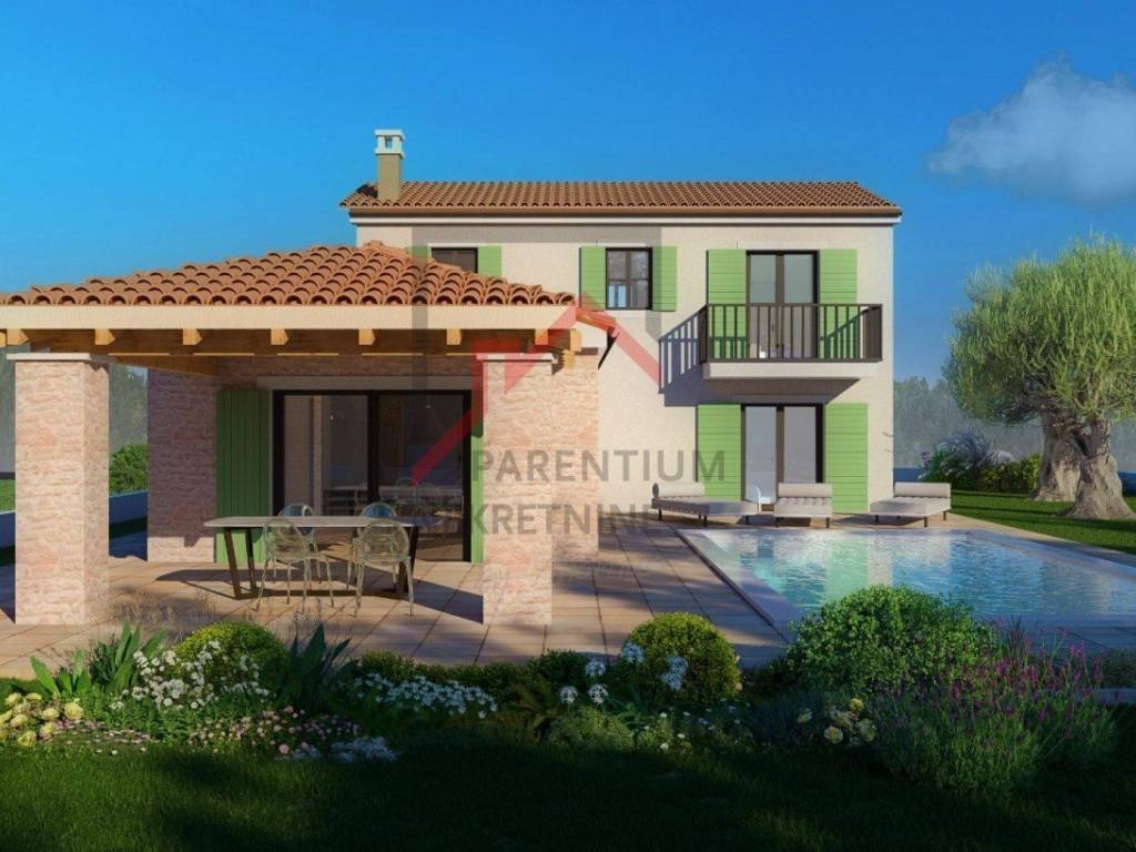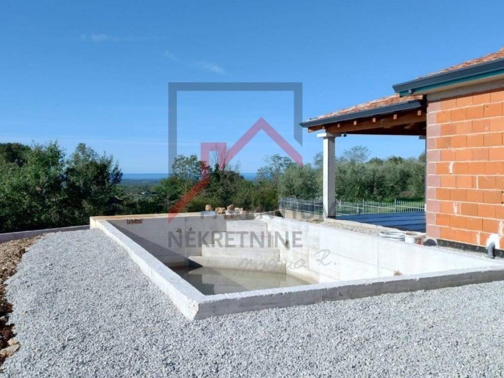 A luxurious new stone house for sale with a view of the sea, a swimming pool and a spacious garden - ideal for a family!