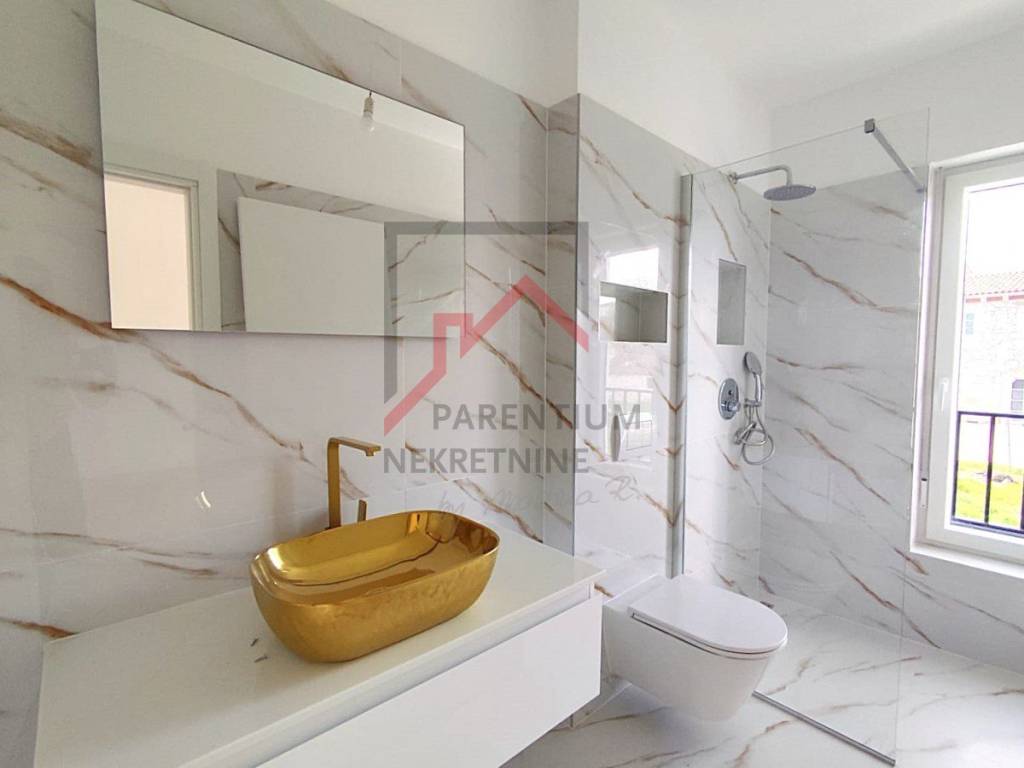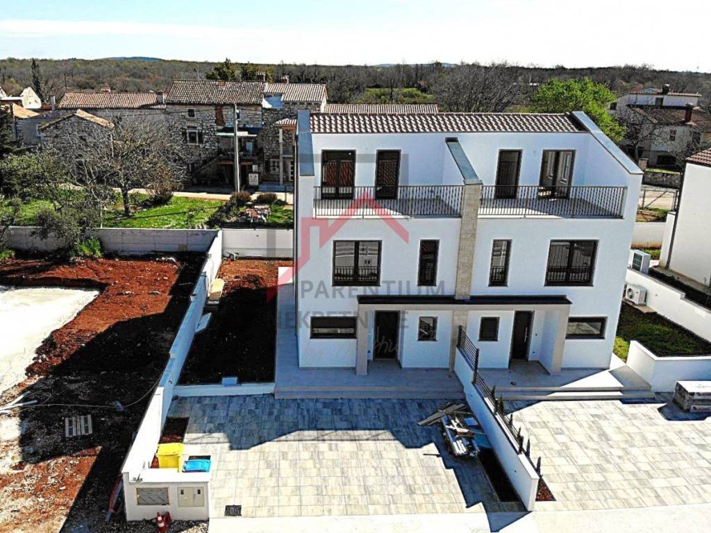 Just 6 km from Poreč, in a peaceful setting of Mediterranean nature, is this modern semi-detached house, ideal for a pleasant family life or an investment for tourism. The house is spread over three floors and offers modern design, functionality and top-notch equipment.