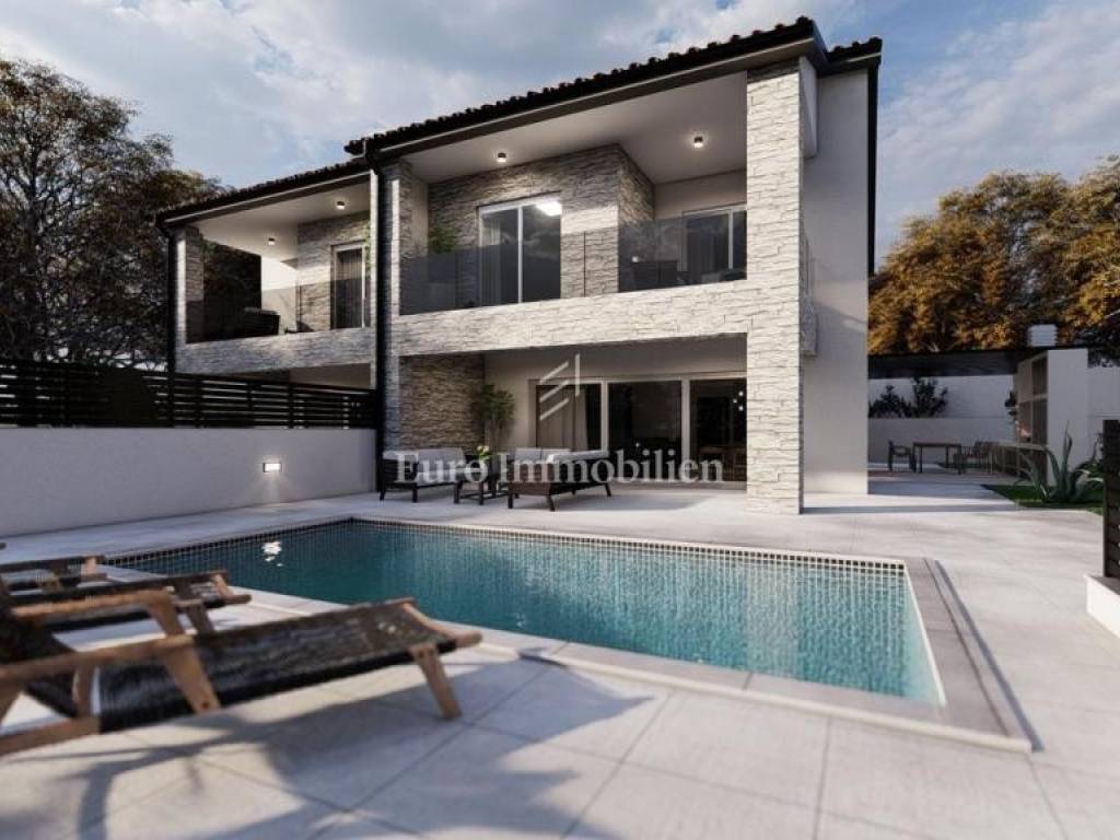 In the vicinity of Malinska, in a quiet location, a semi-detached house with a pool and sea view is for sale.