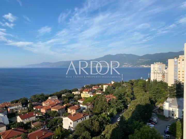 A fully furnished apartment with a beautiful sea view is available for rent, with a total area of 70 m², located on the 14th floor of a residential building with an elevator, in the Kantrida district of Rijeka. The apartment consists of two bedrooms, a living room, a kitchen, a bathroom and a hallway.