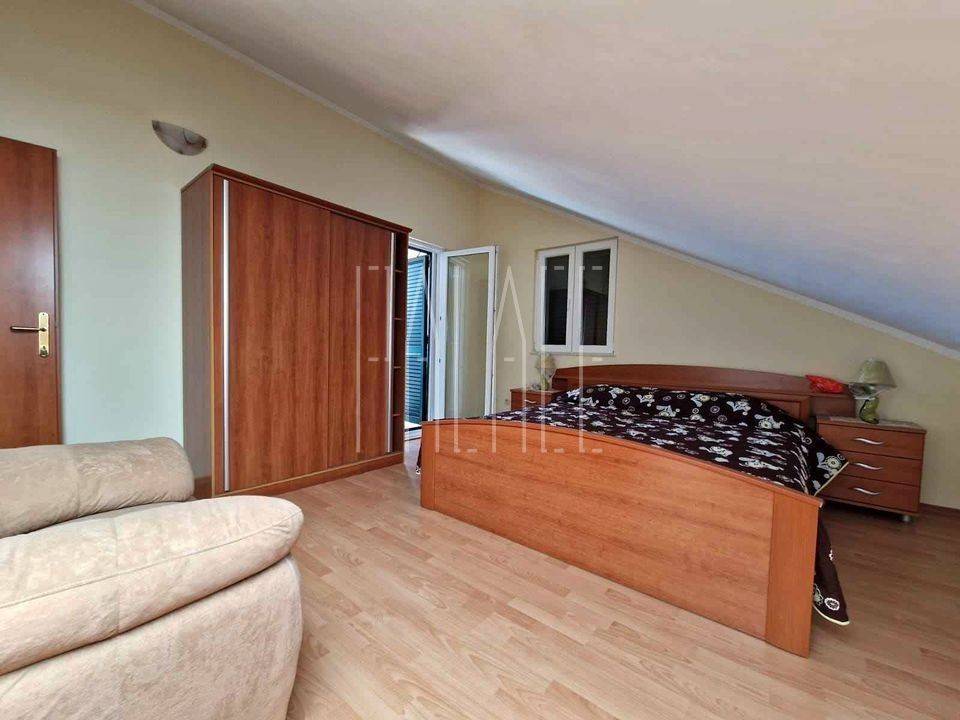 The apartment is located in a nice two-story building, in an exceptional position, 100 m away from one of the most beautiful beaches in Supetar and consists of a kitchen with a dining area, a living room, one toilet, one bathroom with a toilet, a balcony, and indoor stairs leading to the floor where there are four bedrooms.
