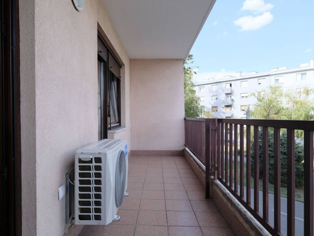 Odličnog je rasporeda, a sastoji se od ulaznog hodnika, dnevnog boravka s kuhinjom i blagovaonskim dijelom, velikog balkona, spavaće sobe i kupaonice. Izlaz na balkon je iz dnevnog boravka i spavaće sobe.