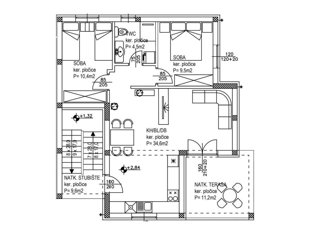 For sale is a two-room apartment marked S6, located on the second floor of a residential building whose completion is planned for the summer of 2024. The residential building consists of six residential units designed to meet high standards of living. There are two residential units on each floor of the building. The top quality of construction and equipment is visible from the very beginning of construction. In the construction of the building, high-quality materials will be used in accordance with the highest construction standards (thermal insulation, top-quality carpentry, top-quality floor coverings...) Heating and cooling is provided by air conditioners, one indoor unit each in the bedrooms and living room, and floor heating in the living room, kitchen and bathroom.
