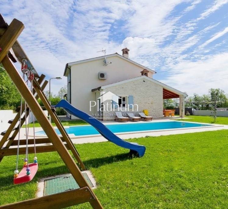 This beautiful villa is built to a high standard and traditional style. The interior hides a beautifully decorated space with attention to detail. The villa is located in the municipality of Marčana. This is an ideal destination for those looking for a peaceful vacation, far from the summer bustle and overcrowded tourist centers. The coast is 36 km long, and is the least urbanized zone in Istria with crystal clear sea surrounded by lush greenery. Everything is surrounded by green hills and blue bays, many of which are only accessible by boat. The entire environment is ideal for walking along the Istrian wine and olive roads, and viewing old dry walls and Istrian kažuns, autochthonous field houses. In addition to cultural heritage, this region also has a rich gastronomic offer that we recommend you try! The coast is 36 km long, and is the least urbanized zone in Istria with a crystal clear sea surrounded by lush greenery. A villa of 165 m3 with a yard of 800 m2 and a pool of 36 m2. It consists of a ground floor and a first floor and contains three bedrooms, three bathrooms, a toilet, a living room, a kitchen with a dining room, two terraces, a storage room. The pool facility is above ground in a separate building. Two outdoor and indoor fireplaces, solar, central heating, large gas tank, cameras, underfloor heating, air conditioning, alarm, safe, outdoor shower. It is sold fully furnished. Info on 00285 91 924 9486