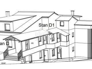 Apartman se sastoji od dvije spavaće sobe,kupaonice,wc,dnevni boravak+kuhinja+blagavona,terasa,parkirno mjesto.