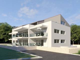 This modern apartment is located in a new building on the first floor, only 300 meters from the sea with a sea view. The apartment consists of four bedrooms, a kitchen with a living room and a dining room, three bathrooms, a room, a hallway, a balcony, a terrace, two parking spaces in the garage and a storage room. Air conditioned Ceramic and parquet floors Security door Complete internal walls Knauf system Aluminum carpentry with electric blinds and mosquito nets Video intercom Facade-stone wool 10 cm Glass balcony railings Elevator from the garage to the first floor Completed construction, use permit Info on 00385 91 924 9486