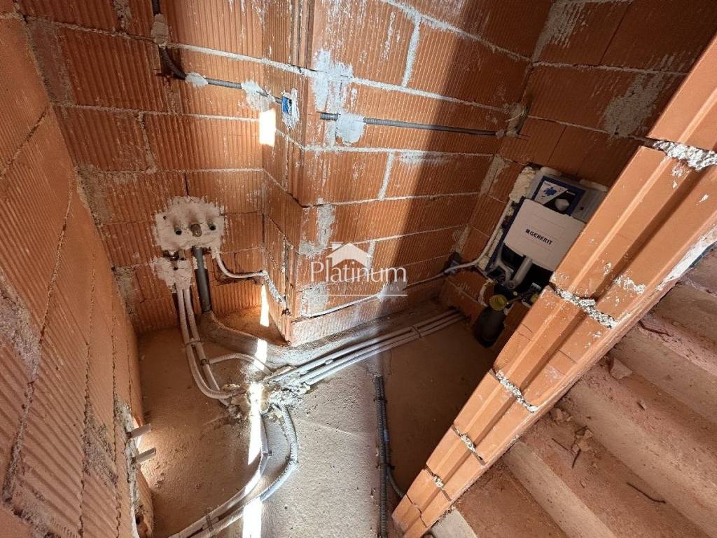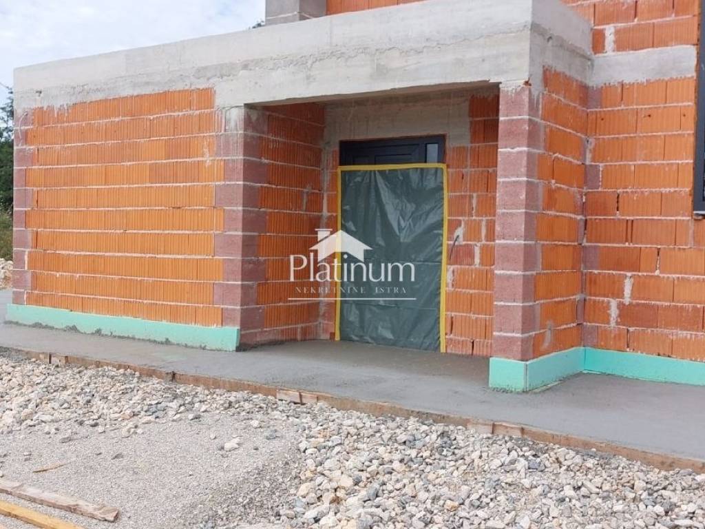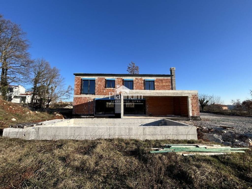 In the vicinity of Tinjan, in a quiet location surrounded by nature, there is this house under construction, which consists of an entrance hall, toilet, legal and large living room with kitchen and dining room, from which there is an exit to a covered terrace with a summer kitchen, sundeck and swimming pool. Internal stairs lead to the first floor where there are three spacious bedrooms with their own bathrooms. Two rooms have access to a terrace with a beautiful view of the surroundings. The house is being sold on a turnkey basis (at the current stage, material and ceramic choices are possible), fully completed, only needs to be furnished and furnished. The environment will also be landscaped, a perimeter wall has been erected, an entrance gate (gate). Four parking spaces are planned. On the side of the house there will be a storage room and a heat pump. Underfloor heating (heat pump) and Daikin air conditioners. Building permit in order, everything is being carried out according to the project. Clear ownership without encumbrances. An ideal place to live in nature and peace (last building plot) or as a holiday home. Contact 00385951987708