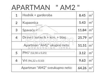 In the Banjole area there is this beautiful apartment on the ground floor in a new building consisting of a hallway and wardrobe, bathroom, bedroom, living room with kitchen and dining room, parking space (reduced area 3.12m2) and garden (reduced area (9.63m2). PVC joinery, electric aluminum shutters, demit facade 8cm + 2 cm Traventino classico stone. Coolin