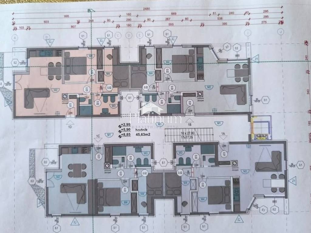 For sale, apartments in a new building, size 45 m2. All necessary facilities nearby, excellent position. The building will contain an underground garage, which is included in the price of the apartment, and an elevator in the building. The apartments will have underfloor heating, burglar-proof doors, and high-quality carpentry. Planned completion of construction by 2027 Reservations in progress Apartment prices from 260,000 euros Info on 00385 91 924 9486