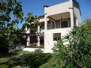 In Umag, not far from the promenade, this luxury villa is for sale, consisting of a multi-purpose storage room in the basement, a ground floor with a kitchen, dining room and living room (from which there is an exit to the garden terrace) with a fireplace. On the first floor there are three bedrooms (each with its own terrace) and three bathrooms. On the roof there is also a terrace with a sea view. In the landscaped courtyard there is also a jacuzzi for relaxation. The house is made of top-quality materials. Around the house there is a green cypress fence. 150m to the beach. Excellent investment for luxury tourism. Clean ownership, documentation in order. contact 00385951987708