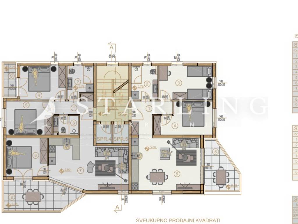 An apartment with a total area of 87 m² is for sale, located in a peaceful area with a beautiful view of nature. The apartment is situated on the first floor of a residential building that has a total of five apartments.