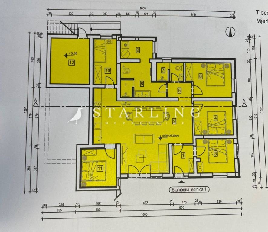 The apartment consists of a hallway, two bathrooms, kitchen, living room, technical room, dining room and five bedrooms.