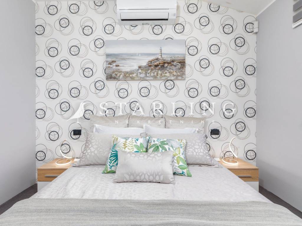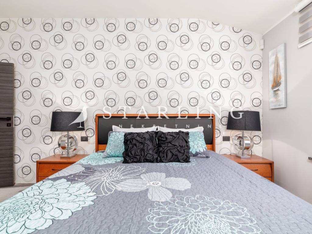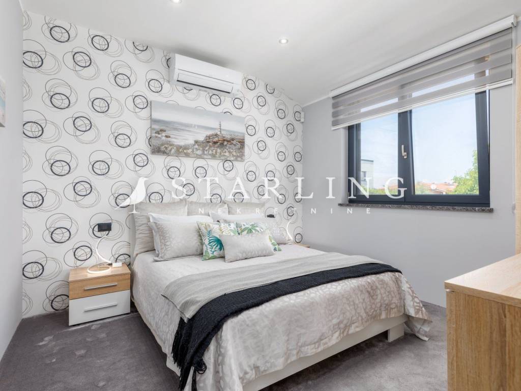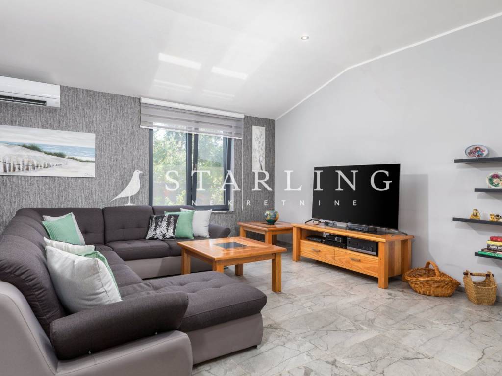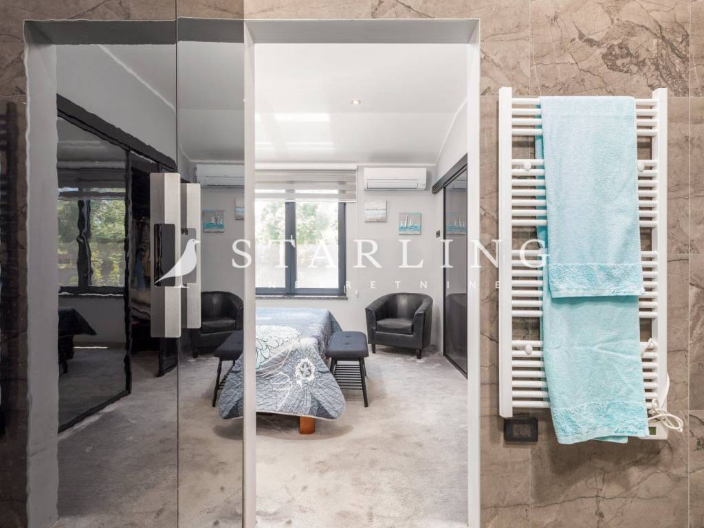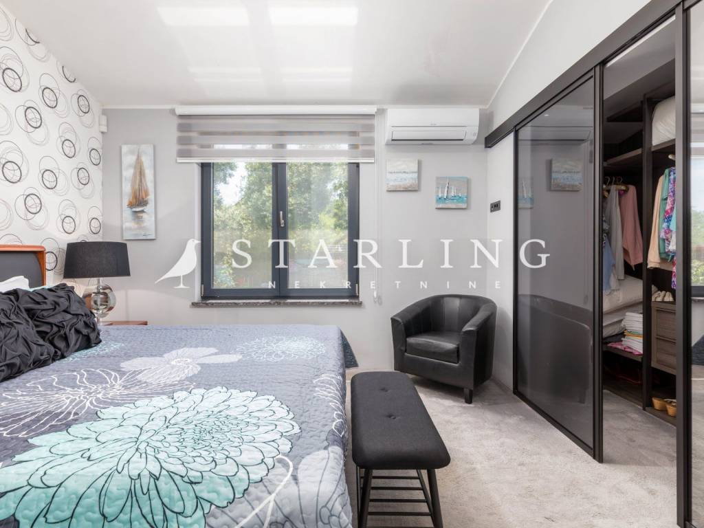 A luxurious single-story villa is for sale in Štinjan, with a surface area of 140 m², ideal for those seeking peace and privacy. It is located in a prime location, just 800 meters from the sea and the popular Hidrobaza beach. The villa consists of two spacious bedrooms, each with its own bathroom, one of which is en suite with electric underfloor heating.