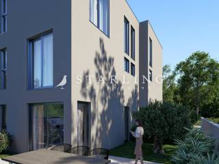 For sale is a luxurious two-story apartment of 124 m² spanning the first and second floors of a modern new building in Volme, a peaceful neighborhood known for its proximity to the sea and green surroundings.